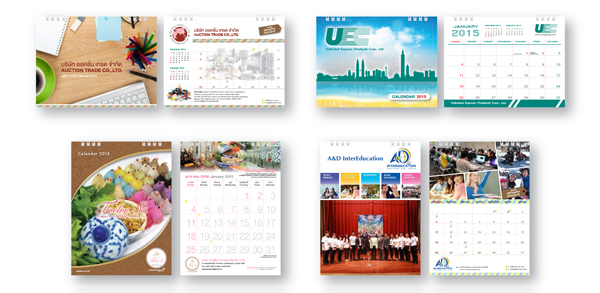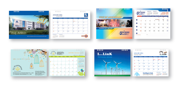 ปฏิทินตั้งโต๊ะแบบออกแบบเฉพาะองค์กรของท่าน เพื่อใช้โฆษณาแบรนด์สินค้าและบริการของคุณได้ตลอดทั้งปี สามารถใส่ภาพประกอบเพื่อประชาสัมพันธ์ธุรกิจ